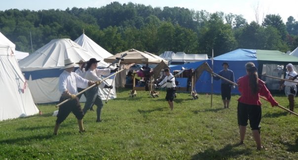 Pennsic 38 (2009) featured the premier of the WMAinSCA initiative, an effort to increase teh number and quality of WMA classes at the SCA's largest annual event, and which featured a group encampment where many of the classes were taught. Several members of the Company were involved in this effort, teaching classes both in the camp and at Pennsic University: Brain, Patrick, Adrian, Christian, and Logos. Of special note are Earl Sir Brian who was a prime mover in the initiative - he helped organize the camp, taught daily classes, and arranged for guest insructors Tom Leoni and Steven Reich. Patrick von Brandenberg graciously acted as land agent as well as teaching several classes featuring the cavalry arm of the Company. |
